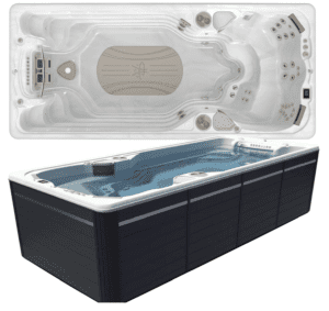The 17AX AquaTrainer features a new ergonomic and swim tank design. Along with numerous engineering innovations that include a new Immersion Lounger, three HydroTherapy Seats each with Zone Therapy and our two high-performance adjustable V-Twin swim jets all backed up by our new Dual Performance Flow Intakes that dramatically reduce the reflective wave effect. The swim tank features a new soft stride mat on the swim tank floor. All encompassed by our new acrylic lip edge design. The 17AX Aquatrainer allows for endless swimming at beginner to advanced levels with the Aquapro Control you can dial in your perfect swim. This Self Cleaning All Year Swimming Pool is insulated to operate 365 days a year in any climate.