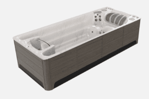 Our 19′ Self Cleaning Executive Trainer gives you a more comfortable swim spa environment for swimming and total-body fitness. Our patented V-Twin Jet and Current Collector Swim Current come standard, so you’ll enjoy the best swim spa on the market. The swim current easily adjusts for every level, from toddlers to triathletes, at the touch of a button with our Exclusive Aquapro Control. Smooth for in-place swimming, the spacious current also provides core resistance for more effective aquatic exercises. For low-impact jogging and walking, our Underwater Treadmill technology is standard. Aquatic running burns just as many calories but without the pounding of dry-land activity. It’s an excellent exercise to manage or prevent joint pain and overuse injuries. The 19Executive Trainer hydromassage seats let you relax after a tough workout. Or power up the jets for an invigorating morning wake-up! Each ergonomically designed seat has a unique configuration of jets – choose the right one to target your sweet spot or rotate among them for total-body relaxation.