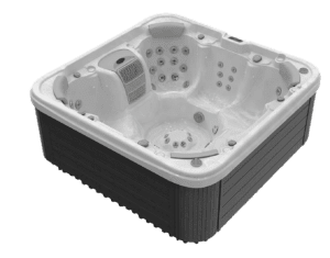 Wellis Libra hot tub provides room for the ultimate WellDome™ foot massage system. This hot tub also features 60 chrome-finished adjustable water jets, exclusive chromotherapy LED lighting, and lighting waterfall. This hot tub has enough space for 7 bathers, so you can enjoy the ultimate ‘shoulder-to-toe’ massage with those who matter the most to you.